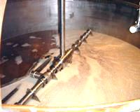 Das Brauwasser wird in die Pfanne gegeben und auf die Einmaischtemperatur erwärmt. Ist diese erreicht, wird das geschrotete Malz langsam dem Brauwasser zugegeben.